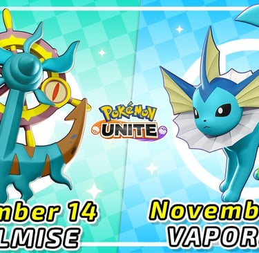 Dhelmise chega a Pokémon UNITE em 14 de novembro e Vaporeon em 20 de novembro. Veja o que sabemos até agora sobre esses novos Pokémon.